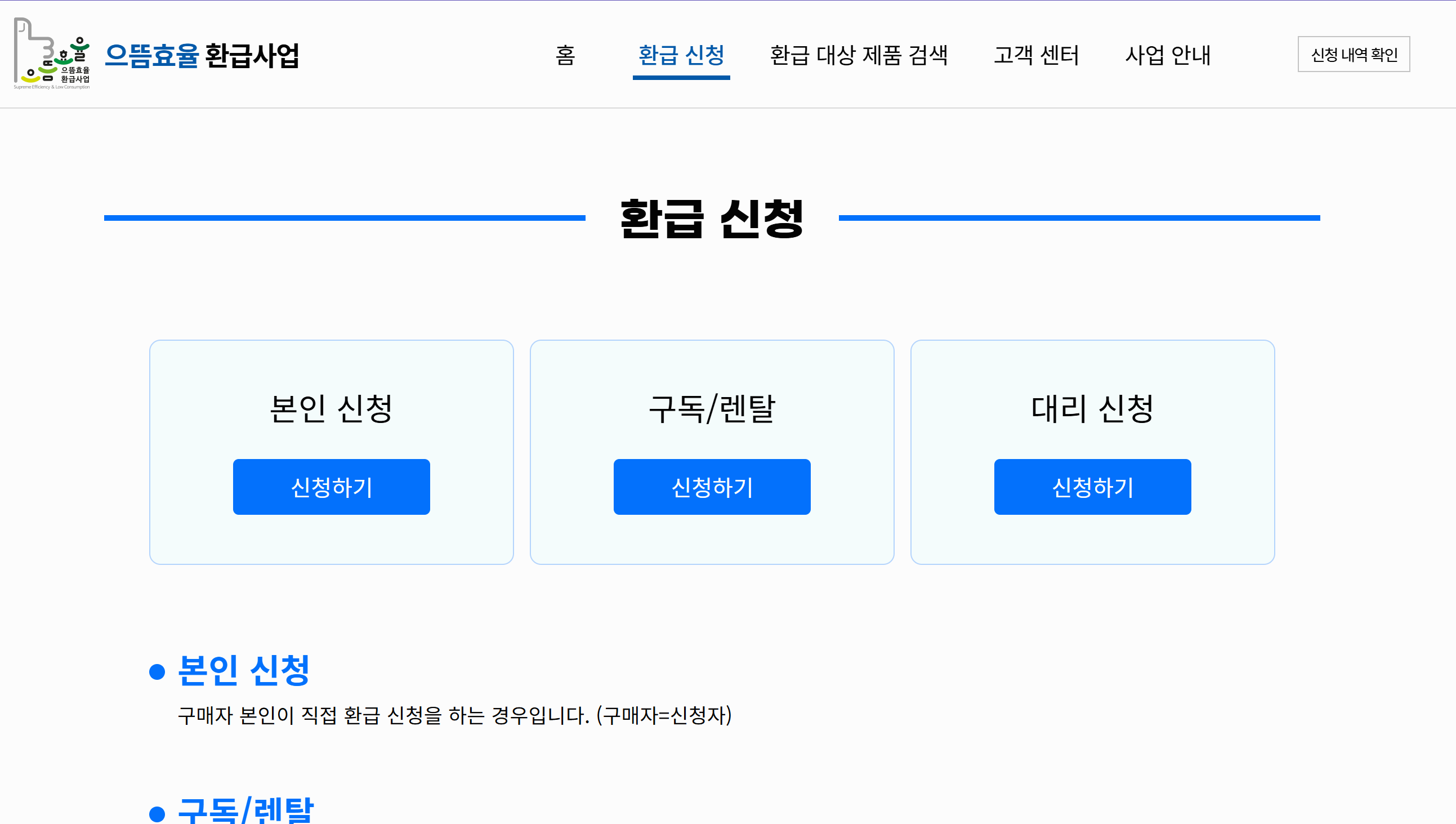 → 온라인 ‘으뜸효율 가전제품 환급 사이트’에서 영수증, 제품 인증서 등을 제출해 신청합니다.