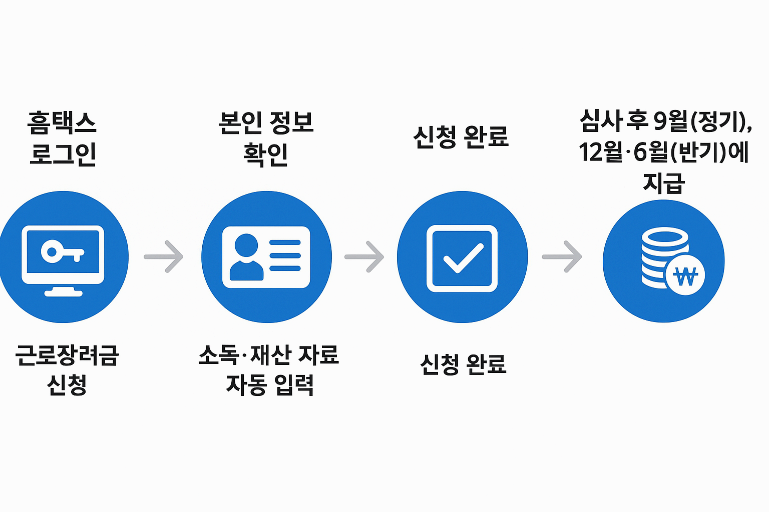 근로장려금 신청은 국세청 홈택스 또는 **손택스(모바일 앱)**를 통해 간편하게 할 수 있습니다.